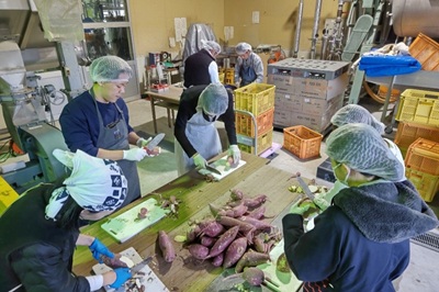 サツマイモの切除作業の様子