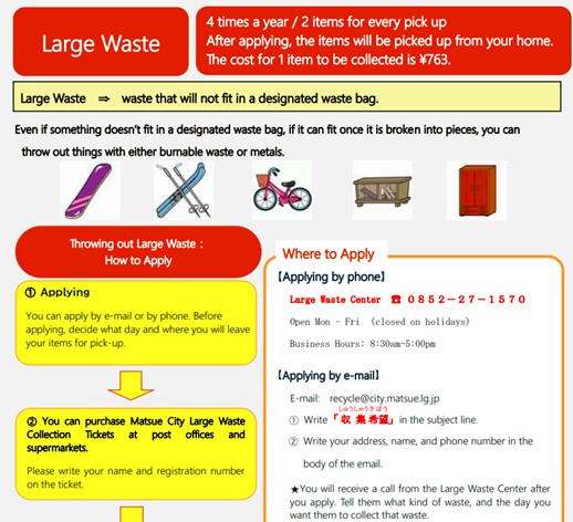 Matsue City Large Waste (requires a fee) (松江市の大型ゴミ収集(有料))