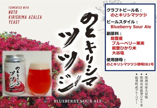 生物資源科学部の小林伸雄教授らは、石川県能登地方での江戸キリシマ古木に関する調査研究、保護活動や地域活性化支援活動を、地域NPO法人と協働して20年来推進してきました。その学術的価値を国内外に紹介した結果、複数の古木が天然記念物に指定され、「H28年度いしかわ歴史遺産」への登録など「のとキリシマ=生きた文化財=地域の宝」と認識され、観光資源として活用も始まりました。ところが、2024年元日の能登半島地震と同年9月の豪雨災害により、地域住民だけでなく、多くのキリシマ古木も被害を受けたなか、能登半島で最大級の古木「大谷の“のとキリシマツツジ”」の所有者池上氏から、「のとキリシマツツジ古木から酒造酵母を単離し、地域の活性化に活用したい」との要請がありました。そこで先鋭研究プロジェクトの児玉基一朗特任教授が、石川県指定天然記念物「大谷の“のとキリシマツツジ”」(珠洲市大谷町)の花弁からローカル酵母を採取し、島根大学連携協定先の株式会社石見麦酒(江津市)により、新規クラフトビールが完成しました。この日本初となる“のとキリシマツツジ酵母ビール”醸造には、副原料としていずれも能登産の「ブルーベリー」、「能登ひかり米」および「大谷塩」を活用し、ビール名は“のとキリシマツツジ”とし、ビールスタイルはBlueberry Sour Ale(ブルーベリーサワーエール)です。